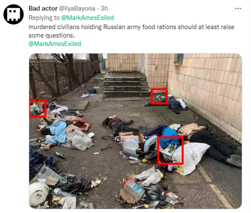 Twitter users pointed out that this is recycled propaganda, since the same debunked claim about “mobile crematoriums” was made at the start of the war.