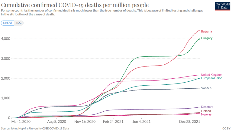 Rather, the Scandinavian or Nordic paradox is about the very low pre-omicron covid infection and death rates in other Nordic countries, i.e. Iceland, Denmark, Norway and Finland. The paradox arises because during most of the pandemic, these countries had fewer domestic restrictions than most other Western countries, including Sweden.