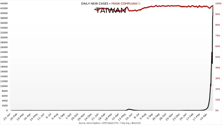 Figure: Mask compliance and infections in Taiwan