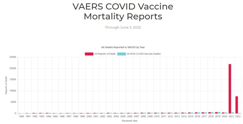 U.S. VAERS data from Dec. 14, 2020, to June 10, 2022, for all age groups combined, show: