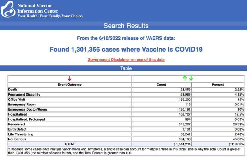The Centers for Disease Control and Prevention (CDC) today released new data showing a total of 1,301,356 reports of adverse events following COVID-19 vaccines were submitted between Dec. 14, 2020, and June 10, 2022, to the Vaccine Adverse Event Reporting System (VAERS). That’s an increase of 6,027 adverse events over the previous week.