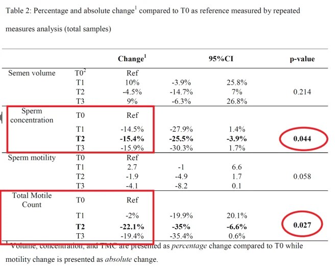 and from this, substantial effects on sperm concentration and overall motile count were discovered.