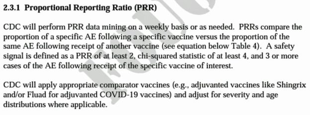 The lynchpin of their safety monitoring was to mine VAERS data for safety signals by calculating what are known as proportional reporting ratios (PRR’s).