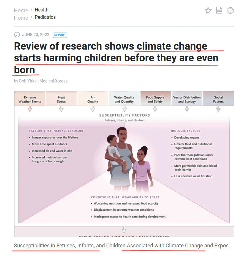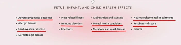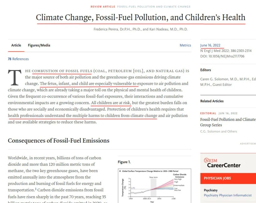 So if parents ask a doctor, why are their children having heart problems, neurological issues, etc, the doctor would be able to cite the NEJM article and explain how those problems are caused by climate change.