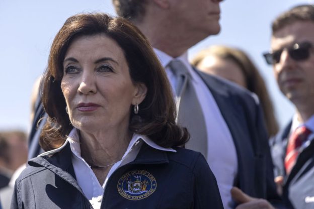 Kathy Hochul, governor of New York, arrives to speak at a news conference outside the 36th Street subway station in the Sunset Park neighborhood in the Brooklyn borough of New York, U.S., on Tuesday, April 12, 2022. A New York City shooter remains at large after 16 people were injured, including 10 people with gunshot wounds, during a chaotic Tuesday morning-rush-hour incident at a subway station in Sunset Park, Brooklyn. Photographer: Victor J. Blue/Bloomberg
