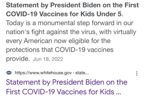Someone may want to tell the Biden Administration: the less said about the pathetic decision to make these shots available for kids under 5, the better.