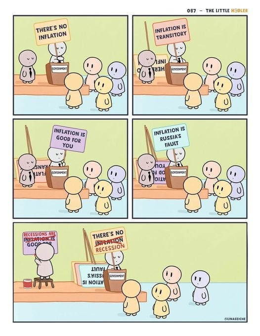The point many of them are clinging to is that we can’t be in a recession because of all the “new jobs”. A startling piece of intellectual dishonesty, since the “new jobs” are not new at all, they’re all the old jobs everyone lost due to lockdown.