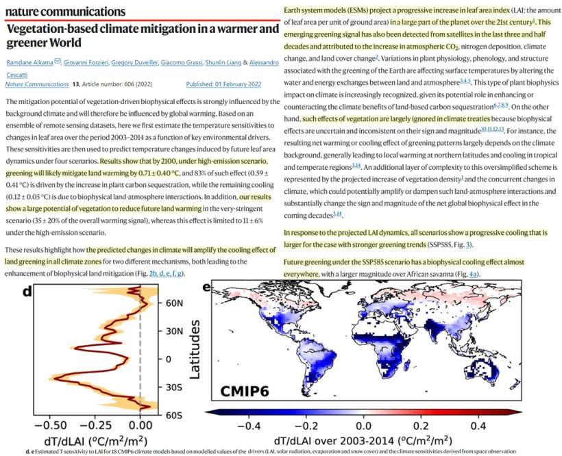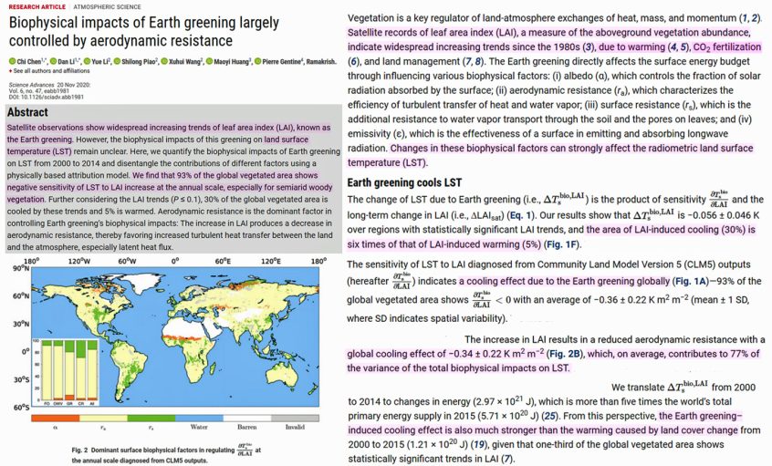 Another new study indicates the “greening-triggered energy imbalance… causes sizable time-lagged climate effects.”