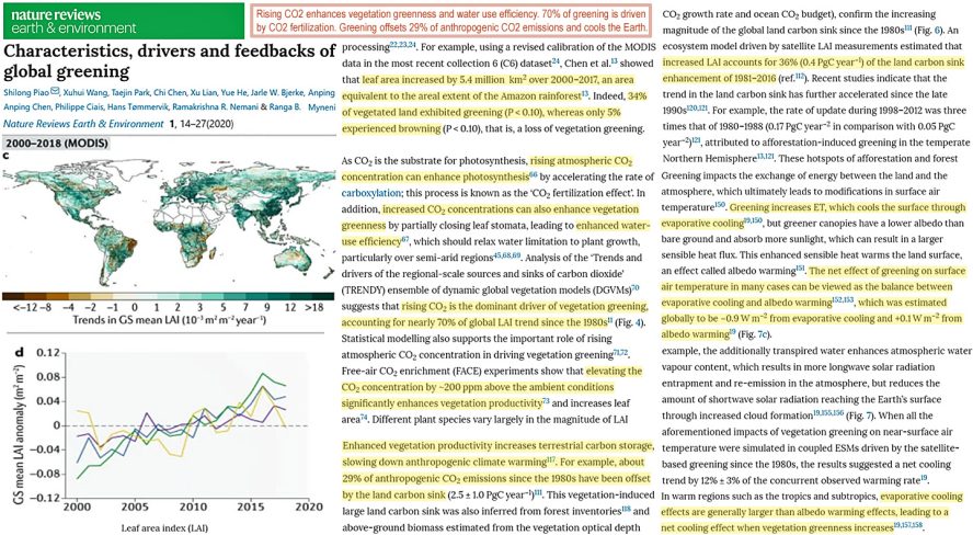 Other recent studies support the conclusion that rising CO2 greens the Earth and “Earth greening cools land surface temperatures.” It’s as if there’s a consensus.