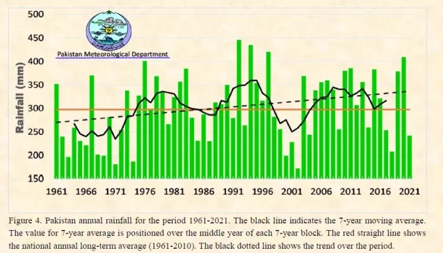 What is significant, though, is the chart of annual rainfall in Pakistan, published in the State of the Pakistan Climate 2021: