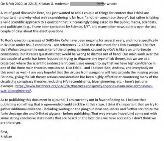 New emails discussing the genesis of this statement came to light yesterday, as a result of another successful FOIA request for Anthony Fauci’s emails, and it contains some interesting moments.