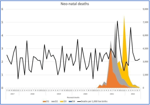 A detailed open letter to the president of the RCOG highlights the lack of information and some worrying signals of potential harm. One such signal is the increase in neonatal deaths in Scotland. It has already been concluded that these deaths were not related to Covid-19 itself but, like the excess deaths in the whole population, the officials and the MSM are ‘baffled’. Oddly, no-one has looked at the effect of vaccination beyond 28 days. Public Health Scotland declared there was no “plausible link” to vaccination to justify investigation, adding, “the outcomes of such analysis, whilst being uninformative for public health decision making, had the potential to be used to harm vaccine confidence at this critical time.” Indeed, Professor Sarah Stock, expert in maternal and fetal medicine at the University of Edinburgh, commented in May 2022: “The numbers are really troubling, and I don’t think we know the reasons why yet” but “stressed the Covid vaccine, which studies have consistently shown to be safe in pregnancy, was not a factor”. Professor Richard Ennos, also from Edinburgh University, has written challenging her logic.