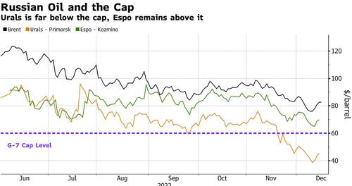 Of course, all of this is just a snapshot in time: once oil prices spike, as they will after the year-end selling is over, it is virtually assured that all Russian oil grades will be priced above $60, even with the deep discount to spot. At that point, traders will be watching closely to see if Russian crude exports can be maintained and how Moscow will respond if supplies do get disrupted.