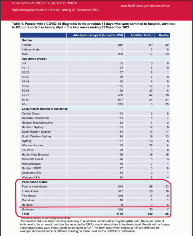 The New South Wales (NSW) data, for the two weeks ending December 31, are a rarity in that they include vaccination status.