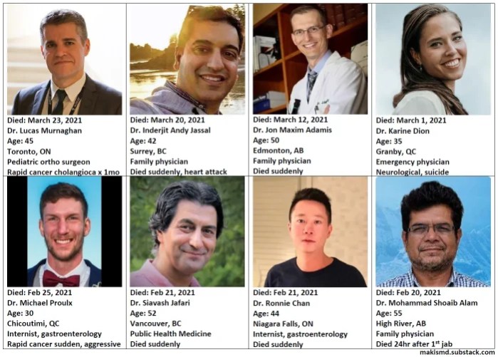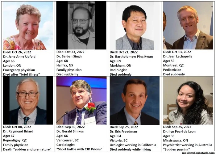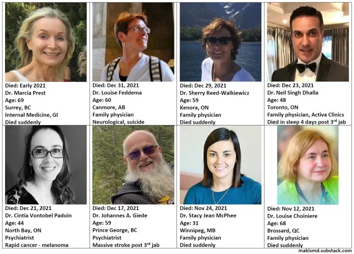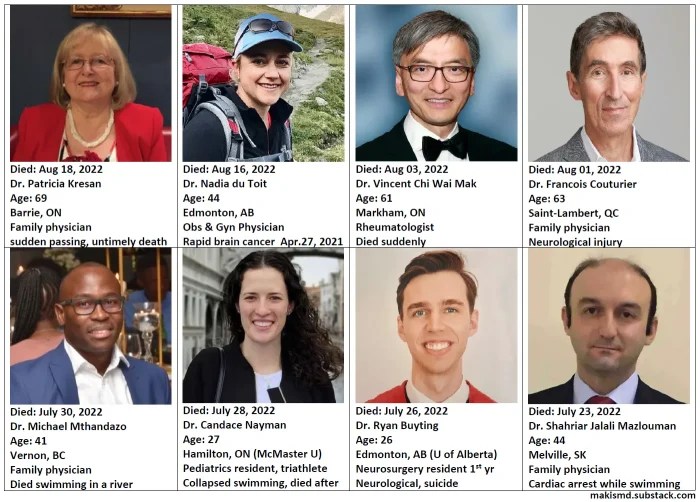 Since the rollout of COVID-19 vaccines in December 2020, a total of 132 actively practicing Canadian doctors under age 70 have died suddenly or unexpectedly.