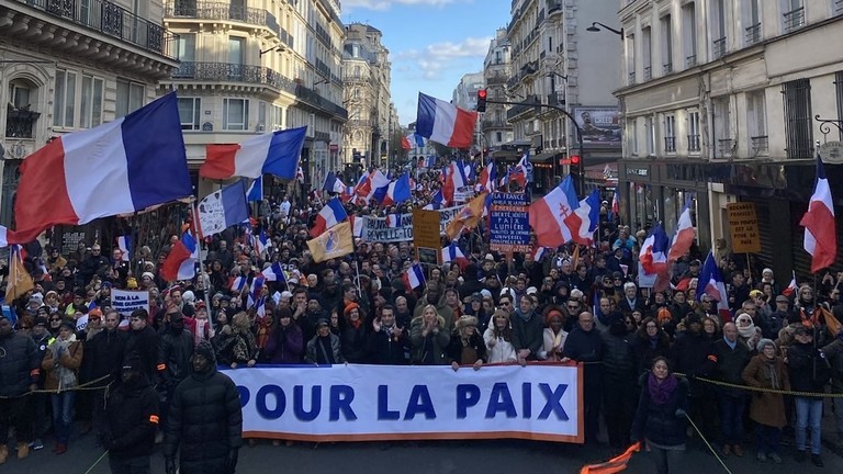 The politician claimed the event on Sunday, dubbed National March for Peace, attracted even more participants than last week, when some 10,000 showed up for a rally in the French capital. According to Philippot, smaller-scale anti-NATO protests were held at some 30 other locations across France as well.