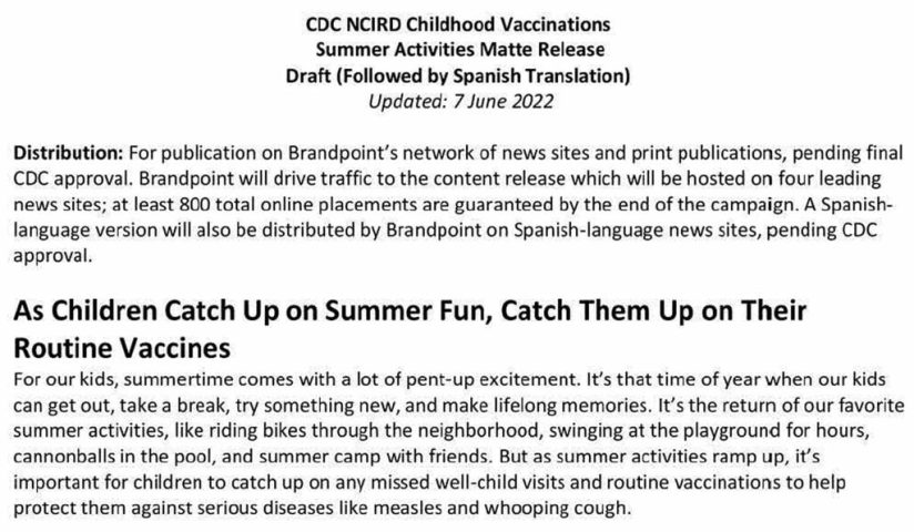 CDC Hired Ad Firm to Write ‘News’ Articles Promoting Flu Shots for Kids, Elderly, Documents Reveal
