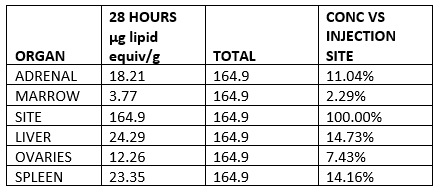 Lipid concentration per gram, recalculated as percentage of injection site.