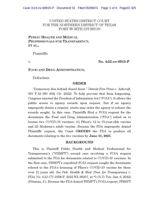FDA ordered to produce all Moderna C-19 vaccine & Pfizer adolescent C-19 vaccine data by mid-2025 » 12d5be0e-ad6c-4ea9-9e44-8ff297dc5805_1700x2200