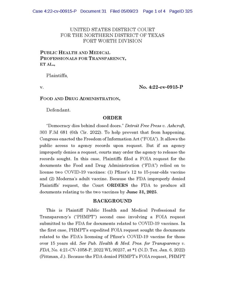 FDA ordered to produce all Moderna C-19 vaccine & Pfizer adolescent C-19 vaccine data by mid-2025 » 12d5be0e-ad6c-4ea9-9e44-8ff297dc5805_1700x2200