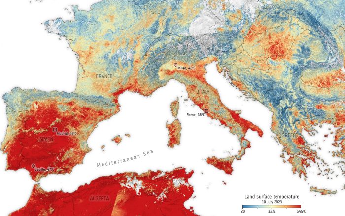Heatwave across Europe on the morning of 10 July 2023 via ESA