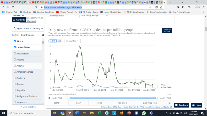 Figure 1: Comparing Covid-19 deaths in Africa and the USA [33]