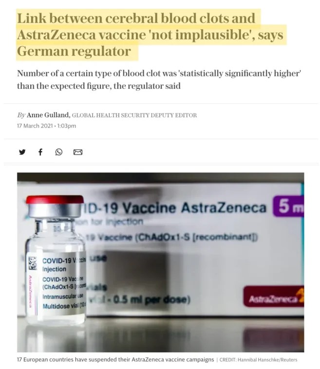 Curiously, however, buried in the 14th paragraph, was a confession that back in March 2021 – when the Telegraph first reported on AZ’s blood clot risks – Medicines and Healthcare products Regulatory Agency (MHRA) officials effectively blackmailed them.