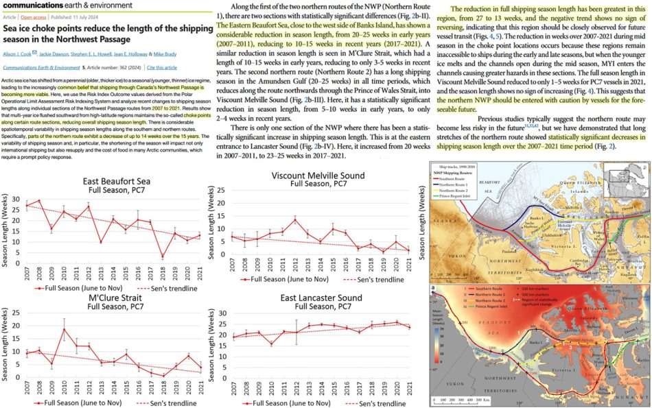 Arctic Sea Ice ‘Choke Points’ Reducing NW Passage Shipping Season Length By 5-14 Weeks Since 2007