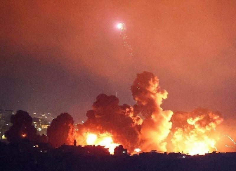 Nearing 3:00 am (local time), Al Mayadeen’s correspondent reported that the site of the massive Israeli airstrikes remains ablaze, as Israeli drones fly overhead.