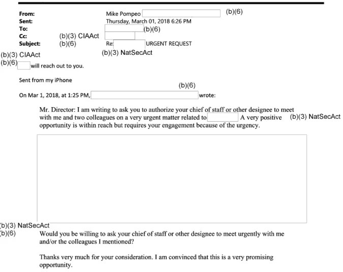 In January 2021, US watchdog group American Oversight released hundreds of pages of emails sent to and from the personal address of Mike Pompeo, CIA director January 2017 – April 2018. In many cases, the emails were official Agency communications discussing matters of extreme sensitivity, conducted off-books. The records – heavily redacted under the US National Security Act – show that on March 1st 2018, Pompeo was approached by two high-ranking CIA operatives, who asked for a meeting on a “very urgent matter”. They added: