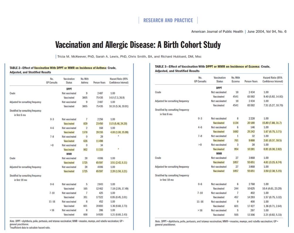 The authors reported hazard ratios far in excess of two and attempted to adjust them by frequency of visits. I can tell you as an epidemiologist that the crude measures of association are far more important. For example, if an unvaccinated child is perfectly healthy without problems, then the visit rate to the clinic will be very low. In this group, there was a more than 10-fold increased risk with vaccination. Conversely vaccinated with asthma or eczema the visit rates will be higher.