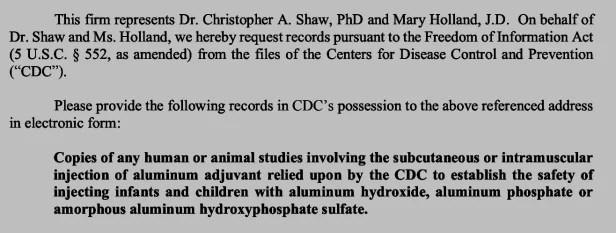 To settle some of the controversy, attorneys representing the Informed Consent Action Network (ICAN) asked the National Institutes of Health (NIH) and The U.S. Centers for Disease Control and Prevention (CDC) to produce the studies relied upon to claim injected aluminum is safe.