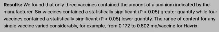 Back in 2021, top aluminum researchers measured the aluminum content of thirteen infant vaccines and compared it to what the manufacturer’s data claimed was in the shots. The researchers found the following: