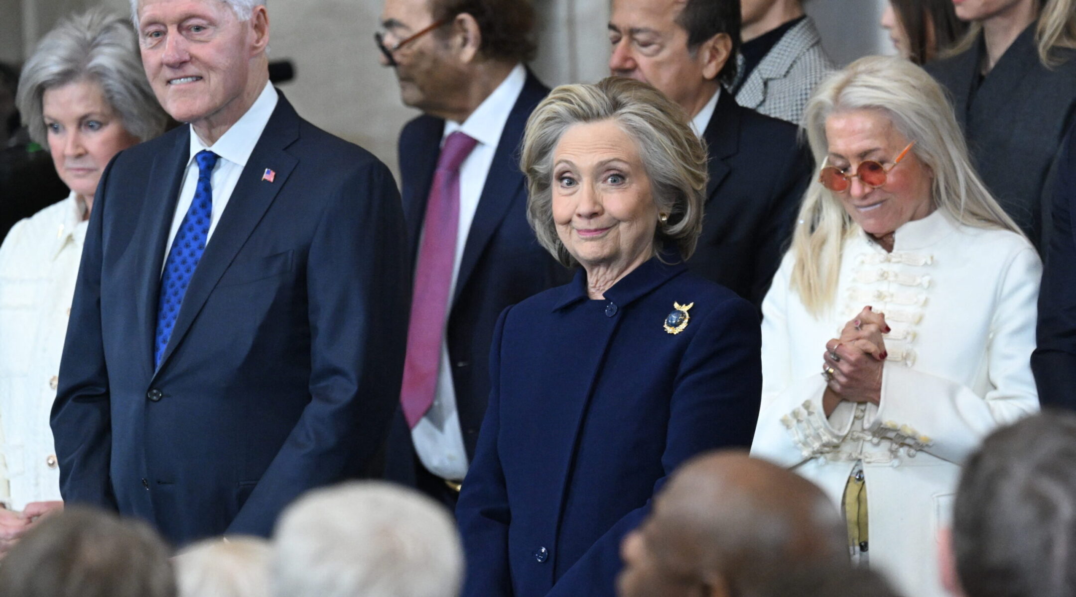 Trump approved (or set himself- presidents usually do) the arrangement of the dais that featured Miriam Adelson and the Clintons front and center at his inaugaration.