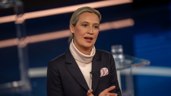 “Until two years ago, we sourced cheap natural gas from Russia through the Nord Stream,” Weidel said, referring to the Russian undersea pipelines delivering natural gas to Germany that were sabotaged via a series of explosions in autumn 2022.