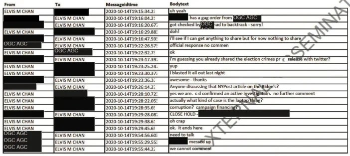 The laptop scandal was unfolding during a crucial time in the 2020 campaign and represents one of the most egregious publicly known examples of political censorship of free speech and media orchestrated by government agencies.