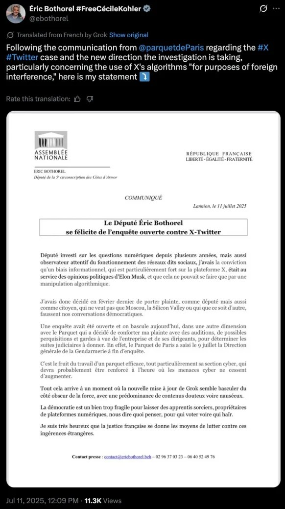 The original accusation targeted X for promoting “an enormous amount of hateful, racist, anti-LGBT+ and homophobic political content, which aims to skew the democratic debate in France.”