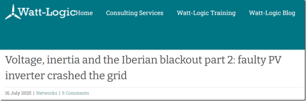 Kathryn Porter has a detailed analysis of the concise but informative report produced by Red Eléctrica de España (“REE”), the Spanish Transmission System Operator on the Spanish blackouts.
