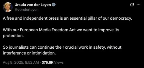 The European Union’s “European Media Freedom Act” became binding law across all member states on August 8, but behind its name lies a set of provisions that could restrict the very freedoms it claims to safeguard.