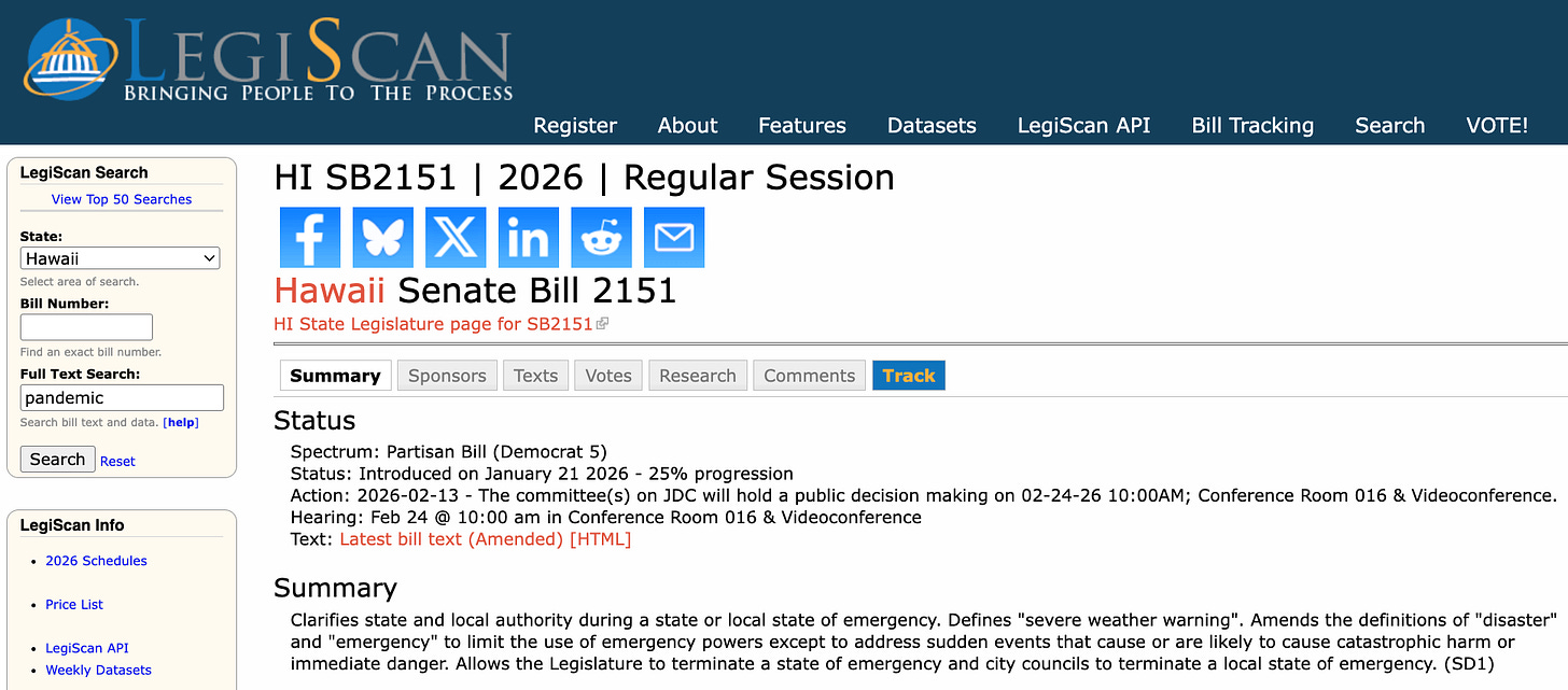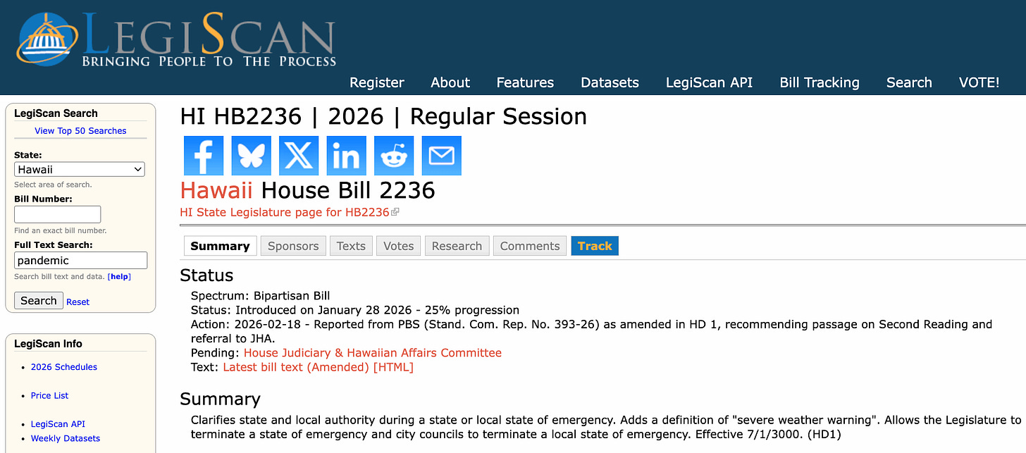 If passed, Hawaii’s bills would ensure those powers are not improvised in the moment, but already written into law—allowing sweeping restrictions on residents to be activated immediately, the moment the next pandemic or declared threat emerges.