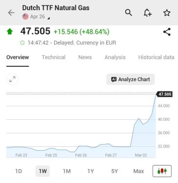 The spike was compounded by a drone strike on QatarEnergy’s major LNG complex at Ras Laffan, which forced production to be halted.