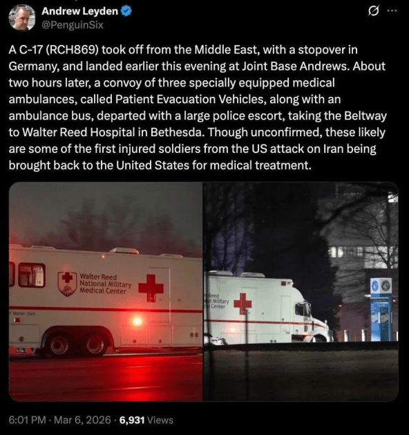 Despite the Trump administration’s efforts to downplay US casualties after seven days of war in the Persian Gulf, clues are appearing on the internet that indicate the US has suffered more combat losses than reported. The first clue is this Xhitter (pronounced SHITTER) from Stars and Stripes.