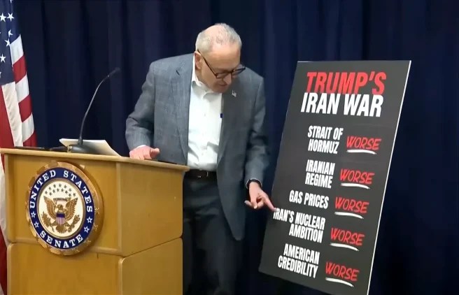 Chuck Schumer, the Senate’s top Democrat, had established this line — attacking Trump from the right — months earlier, during nuclear deal negotiations in mid-2025. When Trump was reportedly exploring a diplomatic agreement with Tehran as an alternative to war, Schumer coined an acronym: TACO (Trump Always Chickens Out).
