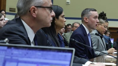 WASHINGTON, DC – FEBRUARY 08: (L-R) Former deputy general counsel of Twitter James Baker, former chief legal officer of Twitter Vijaya Gadde, former global head of trust & safety of Twitter Yoel Roth, and former Twitter employee Anika Collier Navaroli testify during a hearing before the House Oversight and Accountability Committee at Rayburn House Office Building on Capitol Hill on February 8, 2023 in Washington, DC. The committee held a hearing on “Protecting Speech from Government Interference and Social Media Bias, Part 1: Twitter’s Role in Suppressing the Biden Laptop Story.” (Photo by Alex Wong/Getty Images)