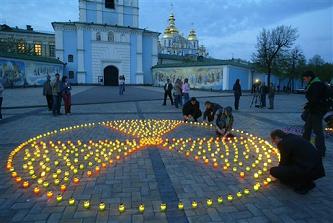 People light candles placed in the form radioactive symbol in Kiev, Ukraine, Thursday, April 26, 2007. Ukraine marked the 21st anniversary of the deadly explosion at the Chernobyl nuclear power plant, the world’s worst nuclear disaster. The April 26, 1986 explosion at the Chernobyl nuclear power plant affected about 3.3 million Ukrainians, including 1.5 million children, according to Ukraine’s Chernobyl Union report. (AP Photo/Efrem Lukatsky)