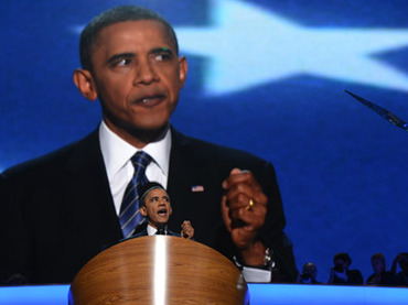 US President Barack Obama delivers his acceptance to run for a second term as president at the Time Warner Cable Arena in Charlotte, North Carolina, on September 6, 2012 on the final day of the Democratic National Convention (DNC). AFP PHOTO Robyn BECK