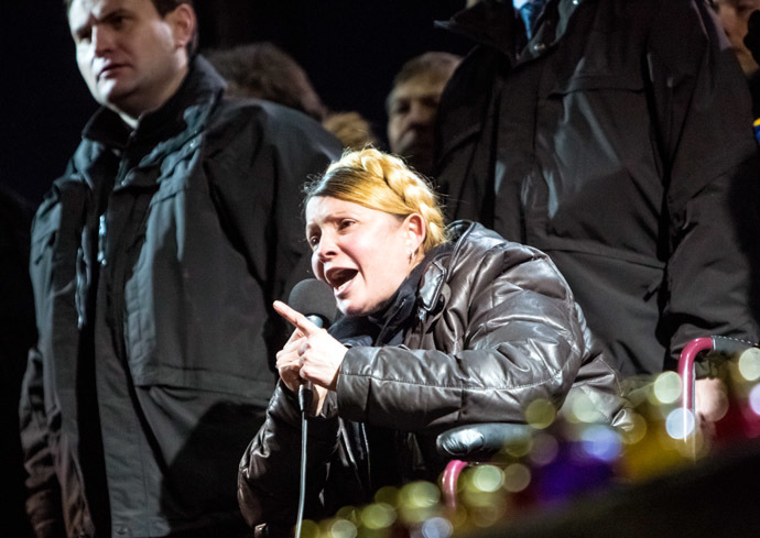 2387075 02/22/2014 Former Ukrainian Prime Minister Yulia Tymoshenko, freed from prison, while making a speech in front of opposition supporters on Independence Square in Kiev. Andrey Stenin/RIA Novosti