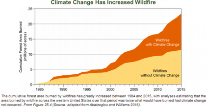 Figure 11: Acreage burned by naturally-occurring wildfires vs. acreage burned by climate-change-caused wildfires