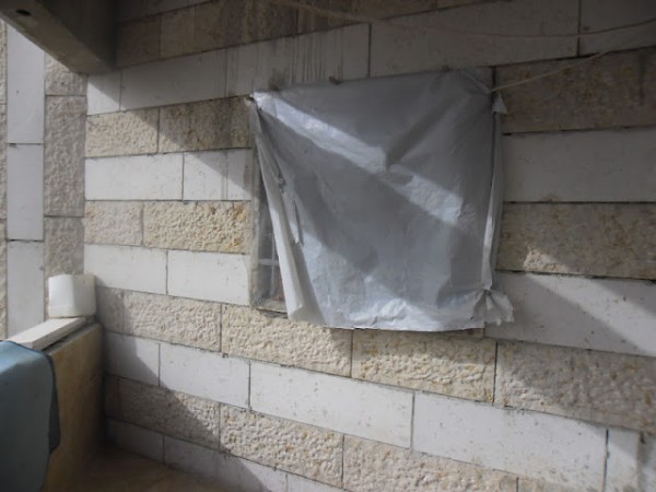 The sight of glass-less windows and wires protruding from half-sanded walls speaks of dreams put on hold, a family living in limbo. The Batrani family has endured the bitter cold of this Palestinian winter with only plastic sheets covering their windows. The Israeli government considers installing glass a violation of the order to halt construction. Violating the order means risking imminent demolition of their home, so the family must make do with the inadequate plastic sheets.
