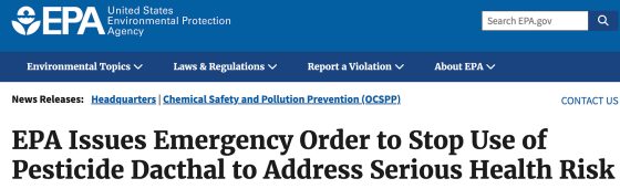 Meanwhile, the Environmental Protection Agency (EPA) has recently acted using a rare emergency order for the first time in 40 years to stop the use of a problematic pesticide, Dacthal, from the market.